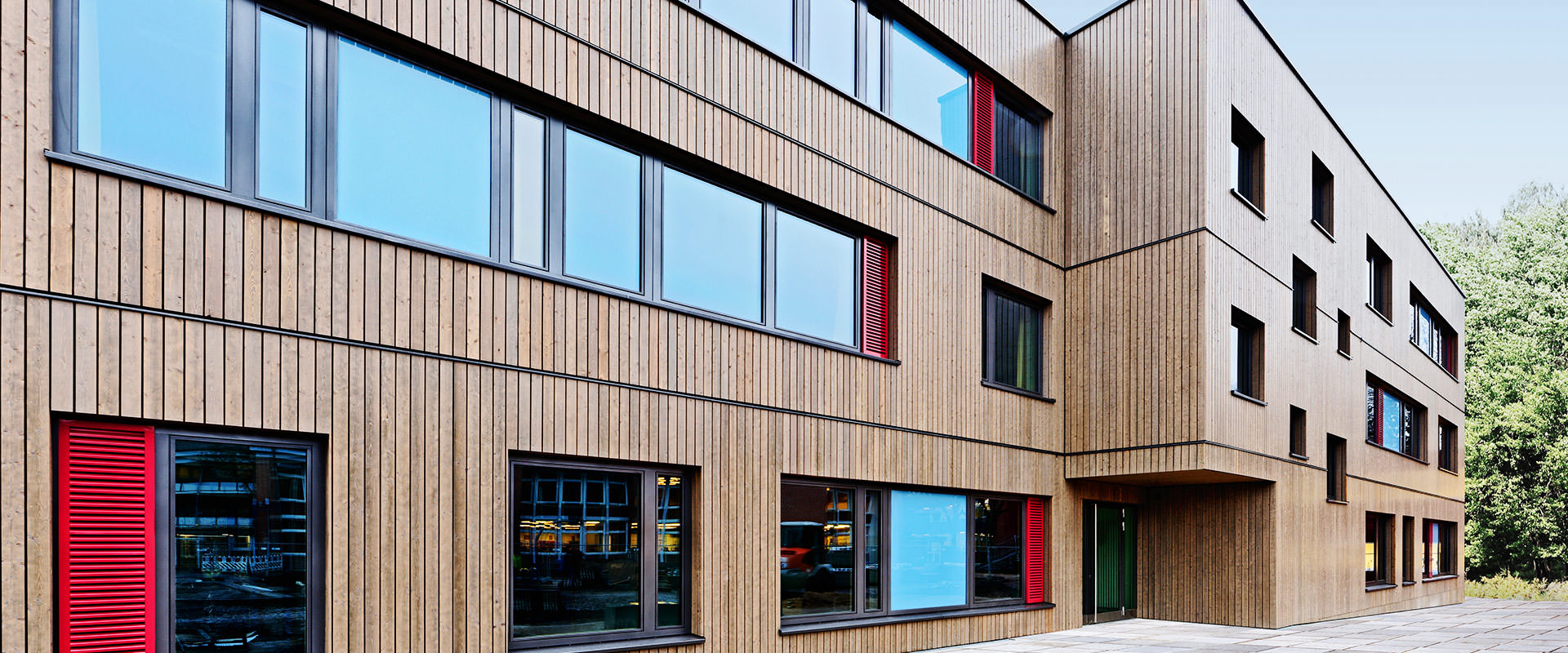 Natürlicher Baustoff: Holz sorgt für ein gesundheitsfördernes Klima, auch in der Hamburger Stadtteilschule Flottbek.